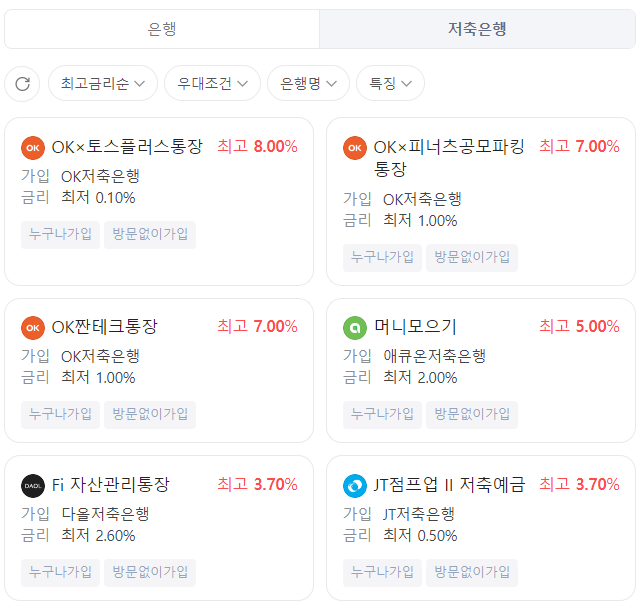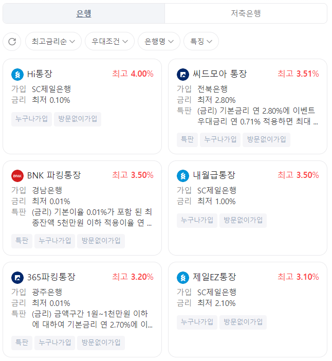 우대 금리를 잘 이용하셔서 적용시키실 수 있다면 1, 2 금융권 파킹은행도 좋다고 생각합니다.