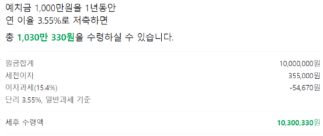 1,000만 원까지 3.55% 적용 후 하루 이자